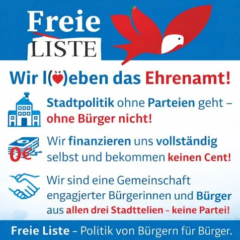 Wir stehen für transparente, ehrliche Kommunalpolitik – direkt aus der Bürgerschaft für die Bürgerschaft. Unser Ziel: pragmatische Lösungen, starke Stadtteile und ein lebendiges Miteinander. Machen Sie mit und gestalten Sie unsere Stadt aktiv mit.