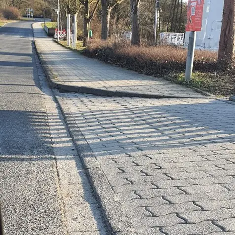 Hier schauen wir auf die Bushaltestelle auf der Seite von Aldi und Edeka sowie den Bürgersteig und die weitere Zuwegung zum Edeka.